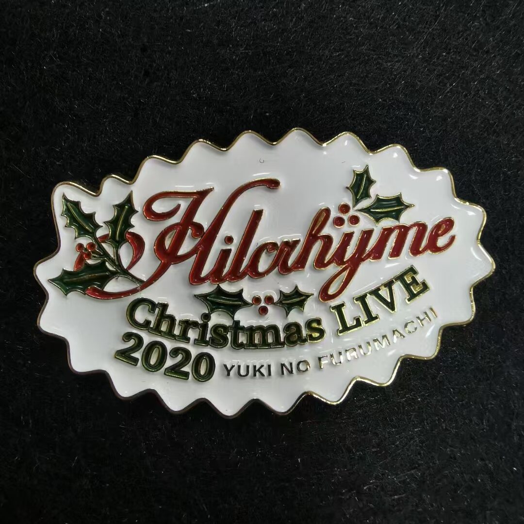 Introducing our fully customizable Christmas event enamel pin—a vibrant tribute to holiday music, live performances, and brand identity. Featuring festive holly motifs, elegant typography (e.g., “Hilcrhyme,” “Christmas LIVE 2020”), and a polished finish, this pin is more than an accessory; it’s a tailored symbol of festive memories, musical legacy, and event exclusivity.