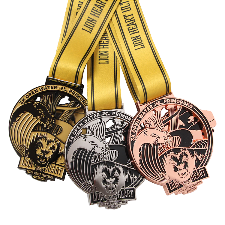 Whether it’s a triathlon event, outdoor extreme challenge, or a customized courage journey (brave journey) activity for enterprises, it can be a hardcore carrier of honor——You can customize the text, pattern, and metal plating, allowing the medal to bear your brand logo or event mark. The hollow-out design presents a three-dimensional sense of hierarchy, the wave element interprets fearless challenges, and the lion image symbolizes the ambition of the strong. Based on this, we will create a unique symbol of extreme honor for you.